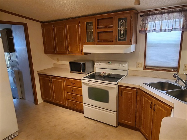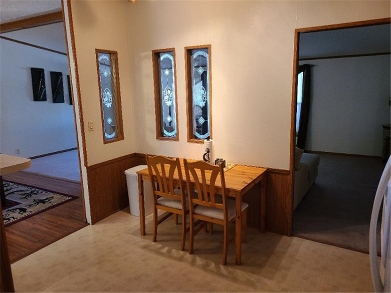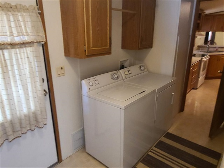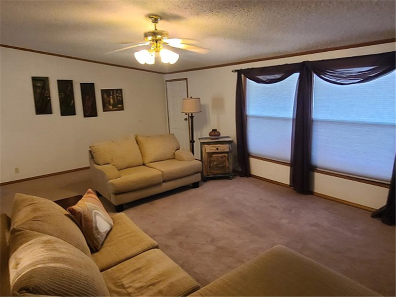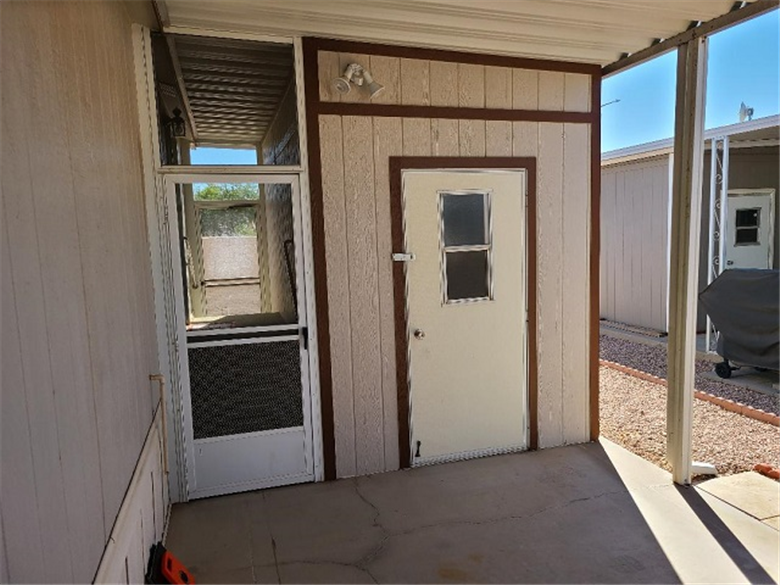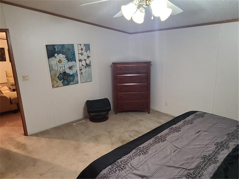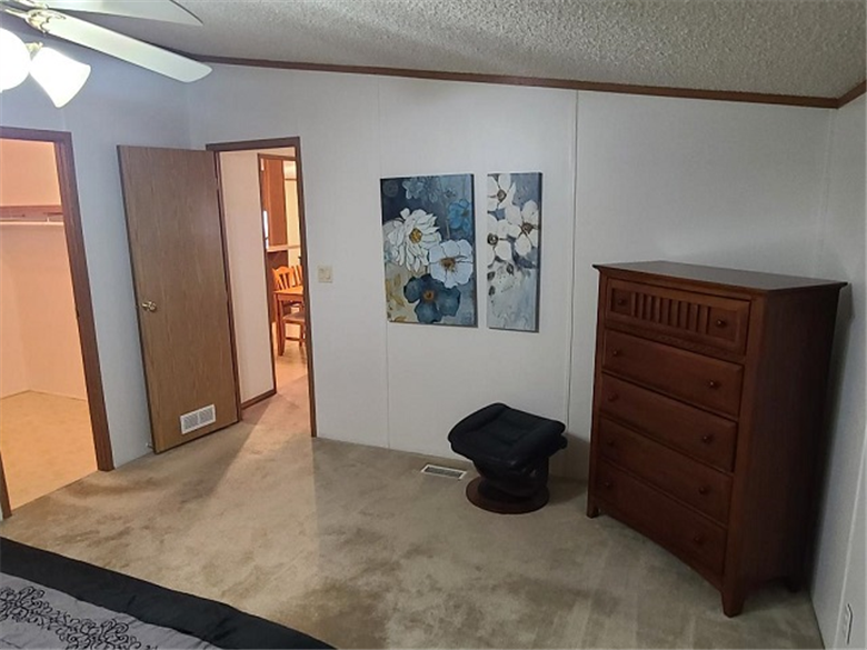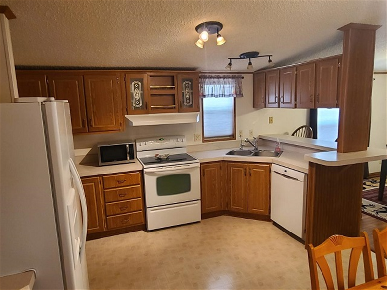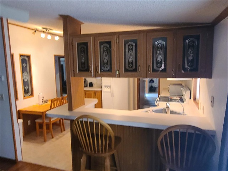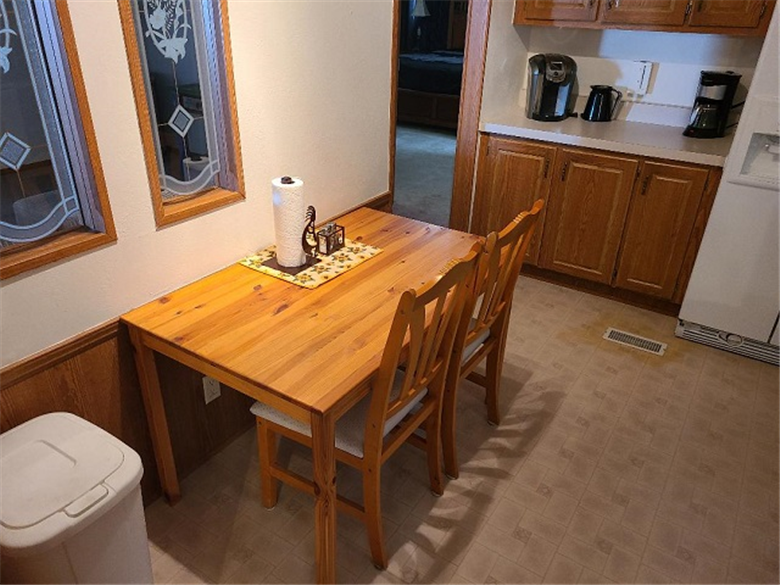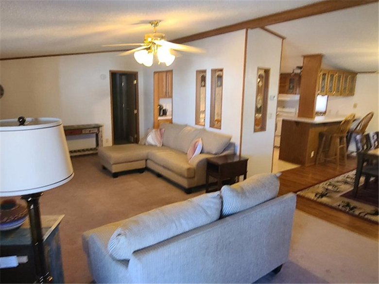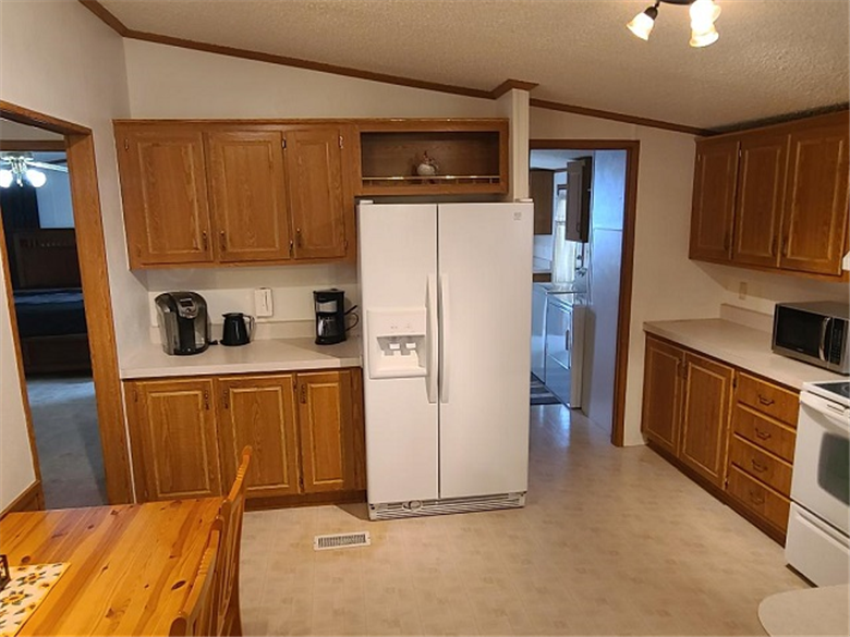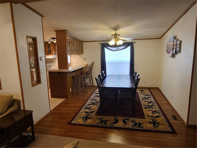 Spacious and charming 1998 Cavco 28x60 3bed/2ba located in gated, pet friendly 55+ community! Popular split bedroom floor plan with vaulted ceilings throughout! Newer heat pump installed in July of 2022! Large living area with formal dining room! Large kitchen loaded with cabinets and counter space offers a side-by-side refrigerator with water and ice, a smooth top range, microwave, and Bosch dishwasher with a breakfast bar which has lovely etched glass overhead cabinets! The formal dining room has lovely easy care wood laminate flooring, and the included dining set has seating for up to 8 people! Off the kitchen is a huge laundry room with overhead cabinets and an additional set of base and overhead cabinets for extra storage and folding counter! The master bedroom has a huge walk-in closet and a step-in shower, skylight, and linen closet in the master bath! Both guest bedrooms are large and can accommodate larger beds! There are full length awnings on the patio and carport and a large deck on the patio! There is a large workshop with electric on the carport and big storage room on the patio side! A beautifully maintained home ready for its new owner!